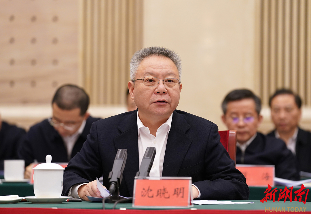 沈晓明代表省委、省政府对考核组一行表示欢迎。他说,党的十八大以来,习近平总书记对湖南巩固拓展脱贫攻坚成果同乡村振兴有效衔接工作多次作出重要指示,湖南始终牢记总书记殷殷嘱托,坚决扛牢精准扶贫首倡地的政治责任,奋力谱写新时代的山乡巨变,推动农业农村发展取得历史性成就、发生历史性变革。此次考核评估既是对湖南贯彻落实中央决策部署的“把脉问诊”,也是对湖南进一步抓好相关工作的有力指导和极大促进。湖南将把接受考核作为深刻领悟“两个确立”决定性意义、做到“两个维护”的现实检验,严肃认真对待考核评估,以求真务实的态度积极配合考核,实事求是、全面客观、真实准确提供有关情况,对考核组发现和指出的问题及时抓好整改。精心周到做好服务保障,坚决服从考核组的工作安排,严守各项考核纪律,为考核组在湖南开展工作创造良好条件。务实全面抓好工作提升,学习运用“千万工程”经验,持续巩固拓展脱贫攻坚成果,有力有效推动乡村全面振兴,以实际行动贯彻党的二十大、中央经济工作会议和中央农村工作会议精神,坚决守住不发生规模性返贫的底线,高质量高标准推动农业农村现代化。